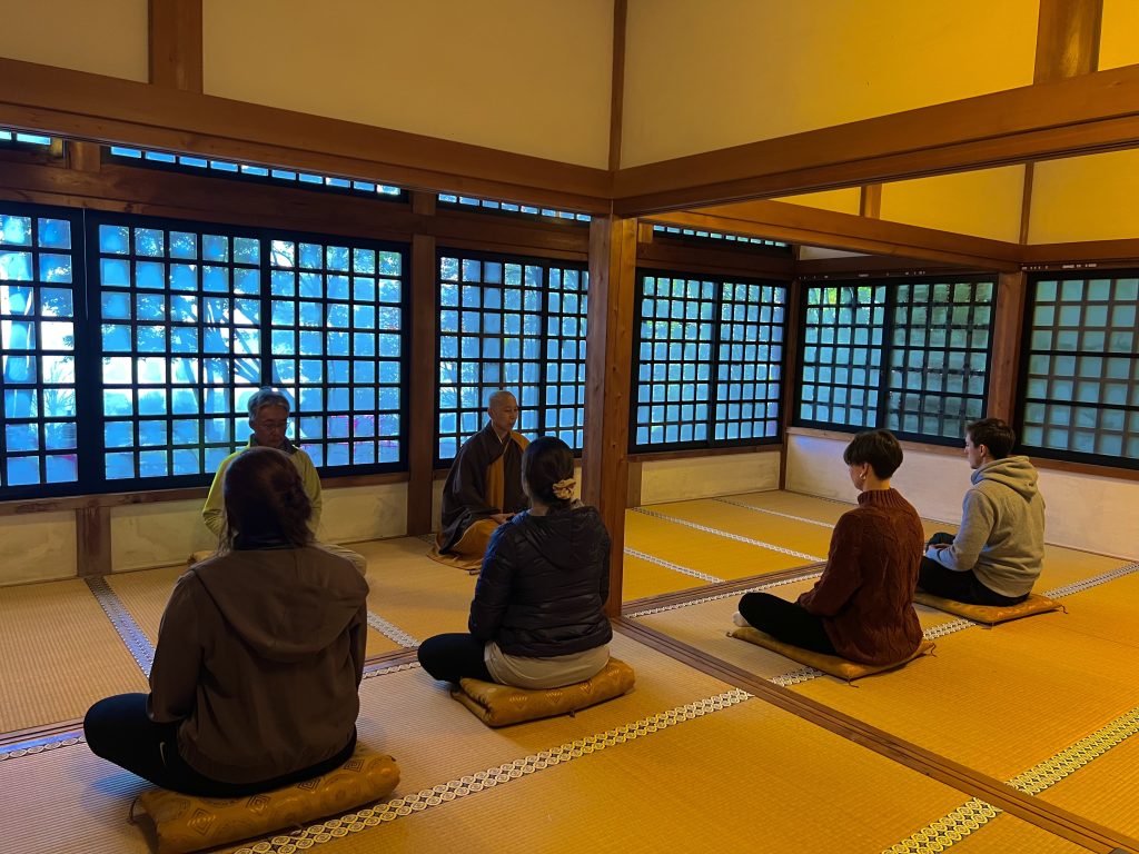(Zazen: 25 minutes, visit to Tachiki Kannon: 20 minutes.)